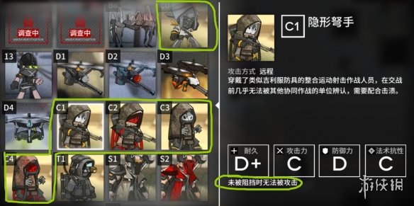 这些敌人拥有未被阻挡时无法被攻击的特性。即他们在被阻挡前,无法被远程攻击。其中隐形弩手和隐形术师因为是远程攻击的敌人,在他们接近防线时,为了防止高台干员被攻击,可以提前部署一个干员在外面吸引火力。或是确保重装干员位置靠前且是最后部署(可以带多个重装干员,前期上备用的,然后撤退换成主力重装干员吸引攻击)。为了应对这类敌人,选要确保防线的阻挡数足够,避免漏人过去。
