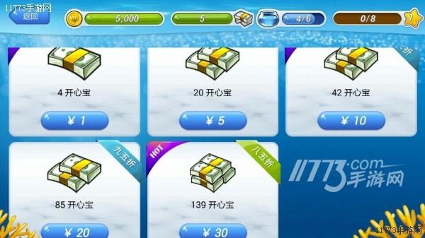 至于游戏费用11773的小编认为完全因人而异,如果玩家想集齐所有的可爱的鱼类那就需要购买一定的开心币了,但是和其他一些游戏来对比的话,小编觉得这样的价格还是比较不错的,相信大多数的玩家还是可以接受的。如果玩家只是消遣娱乐,小编认为现有的免费鱼类也足以满足玩家的需要了。