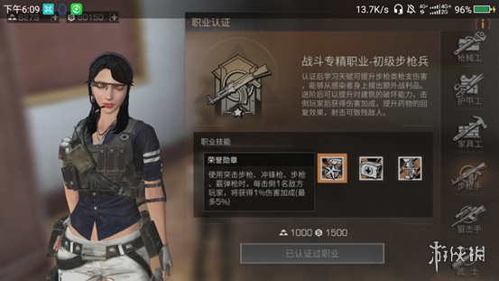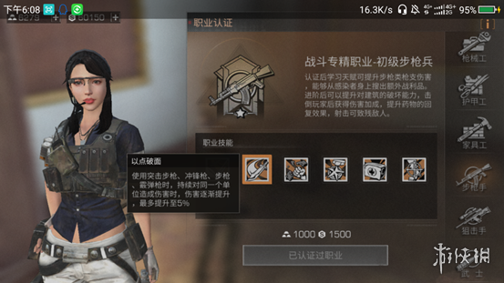 认证后学习天赋可提升步枪类枪支伤害,能够从感染者身上搜出额外战利品。进阶后可以提升对建筑的破坏能力,击倒玩家后获得伤害加成,提升药物的回复效果,射击可致残敌人。