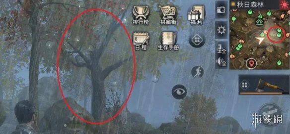 有蜂蜜的大树在地图里长这样,注意红圈处: