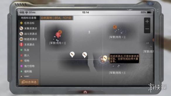 首先是到达快乐101之后的白树高地任务,进图4个资源点如图,这个任务每日做完给500金条,各类初级资源若干,且每日刷新一次,有叹号的资源点为营地士兵,新手建议不要单挑,两人或三人组队很容易打。收集好物资后可以从地图上橘黄色传送门标志即直升飞机处返回营地,这边要提示下梦新,感染物品自动存放仓库点一下,因为你在营地外收集的物资都是感染物品,只能通过托运带回营地,放在背包坐飞机回直接删除物品,自动存放仓库之后即使忘记托运也不用担心,去仓库找就好了。