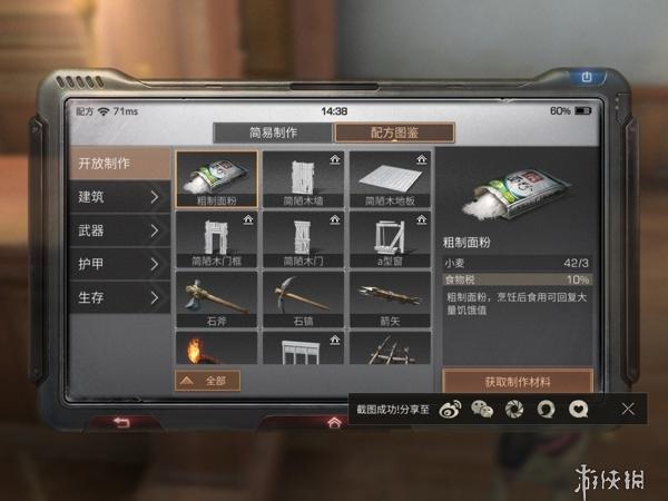 3、采集工具:我们在森林生存的主要目的就是采集,所以采集工具很重要。但是每次采集都会消耗斧头和锄头的耐久,这时我们可以利用已经采集的木头和石头来制作工具,点击配方,然后找到要做的装备,就可以保证有足够的装备进行采集。