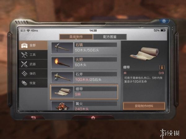 1、血量和健康度:血量是生存很关键的一环,所以想要生存很久就要保证有足够的回复能力。9个麻能够合成一个绷带。每个绷带能够回复120点血量。所以采集足够多的麻,可以让我们能够生存更久。