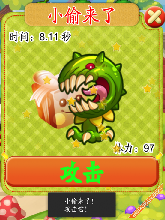 除此之外,还有新奇玩法来袭,消除足够多的元素除了能获得特别辅助道具外,还有机会开启隐藏关卡,召唤偷宝箱的小贼,连续点击相应的次数,夺回宝箱就能获得道具礼包。话说小编非常怀疑程序员葛格是不是感情生活出现了问题,游戏里打击箱子的次数可不是一般的多,释放压力的同时还有些刺激呢!