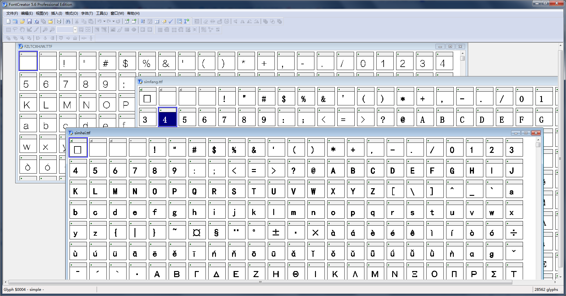 3:假设我所打开的字体是宋体黑体楷体(其实我是转眼就忘了我打开的是什么)假设我想游戏内主字体是宋体,英文是黑体,数字是楷体。那么我选中黑体中的英文字母(可一次性多选),复制粘贴到原来宋体英文字母对应的位置,我再选中楷体中的数字复制粘贴到原来宋体数字对应的位置。然后关掉黑体楷体文件保存该字体文件。