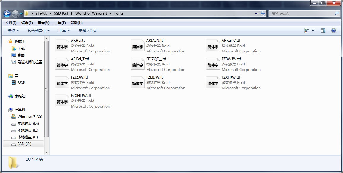 4: 把该字体文件复制9份分别重命名成魔兽世界文件夹里Fonts文件夹的9个文件的名字