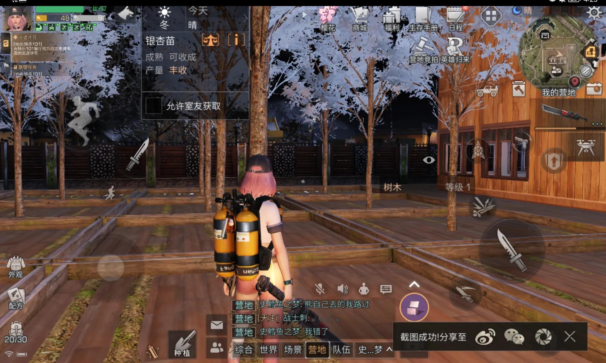 银杏树可以用采集券在白树高地的采集队换