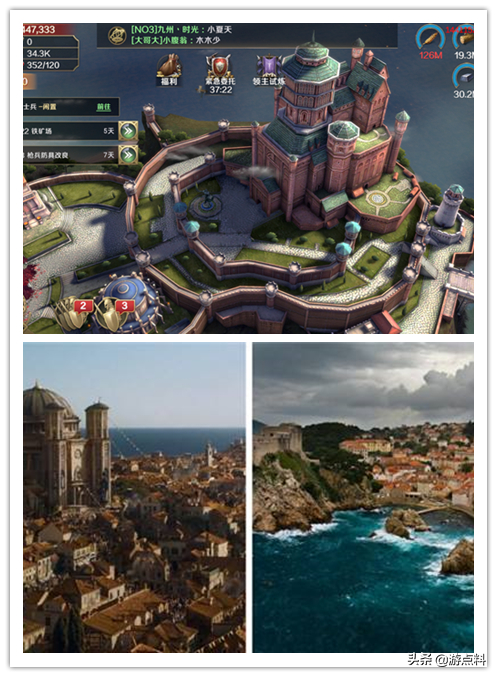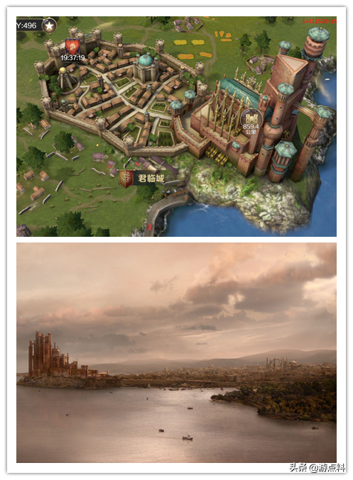 游戏在视觉画面中运用了大量的3D建模技术,并且与原著IP的设定一致,维斯特洛大陆的势力及领土风貌都在游戏中进行了还原,权游粉丝们耳熟能详的建筑物都能在这里被找到。在3D技术的支撑下,玩家能以俯瞰的角度瞭望君临城、临冬城以及整个大陆的大海、河流、山脉等每一处角落。游戏中,被黑水湾环绕的君临城霸气呈现,以铁王座的所在地红堡为最高点,建筑向下呈阶梯状,傲视群雄,展示着权力的至高无上,精致的复刻让小编游戏时瞬间入戏,闪出大地在我脚下,剑指铁王座,入主君临的念头。