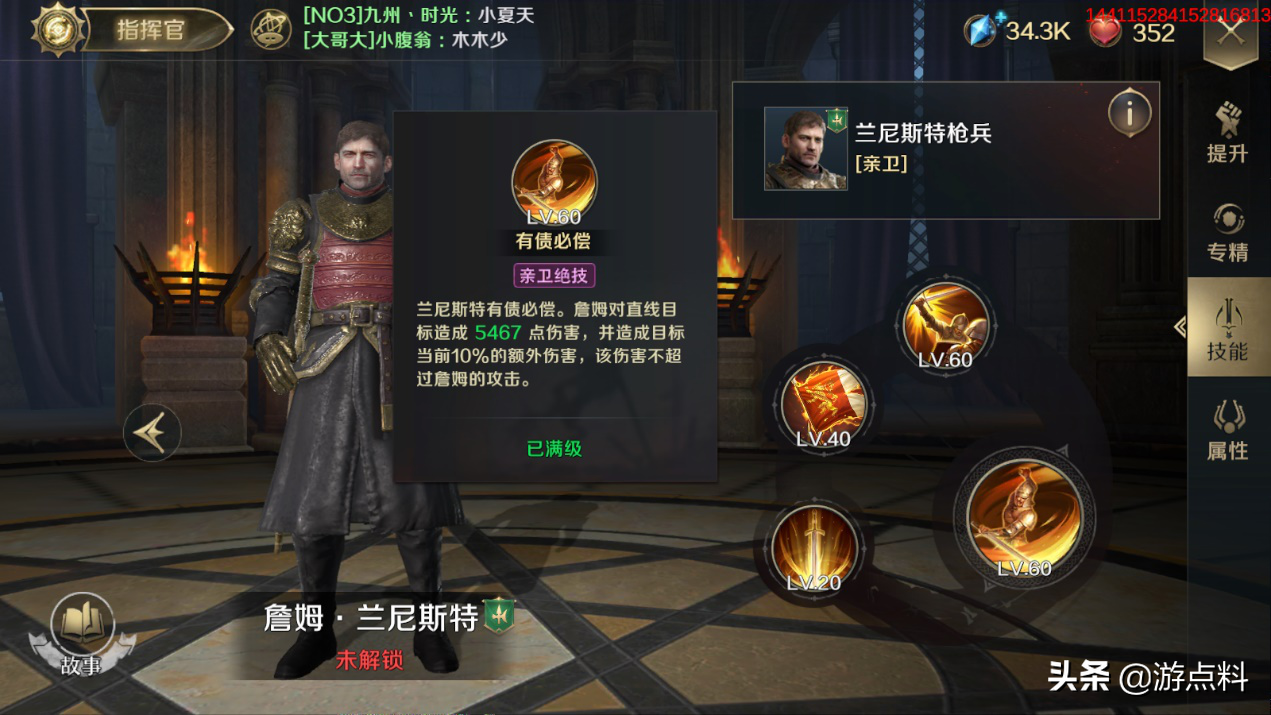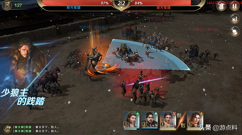 除了以上人物设计的方面外,小编纵观整个指挥官系统,游戏也在人物的策略属性上下了一番苦功。指挥官被分为输出、防御、辅助三种属性,每个指挥官都有自身独有的专精天赋和战斗技能,分别对应指挥官的相应属性。在战斗过程中,游戏也为AI制定了可视化的战斗场面,不仅亲手掌握技能的释放时机,还能看到每位指挥官的技能效果。值得一提的是,技能的名称也别有心意,深得小编这种权游粉丝的欢心,“少狼主的践踏”符合罗柏·史塔克的年轻气盛,“有债必偿”这句最为经典的兰尼斯特家家训配合弑君者詹姆·兰尼斯特让人印象深刻。