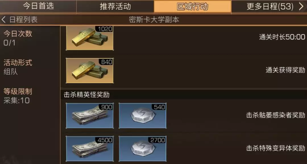 密斯卡大学任务中,击杀精英怪可获得技能点,不同星级获得的技能点数量不同。