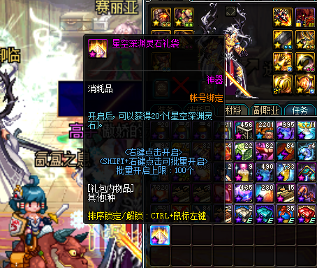 星空裂缝中也有较小几率掉落星空深渊灵石礼袋(账号绑定),打开后可以获得20个星空深渊灵石。