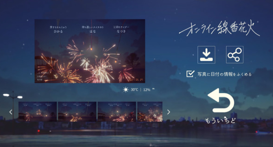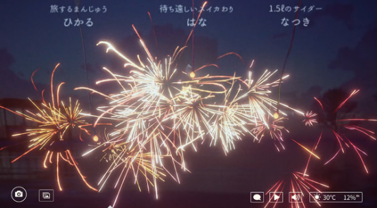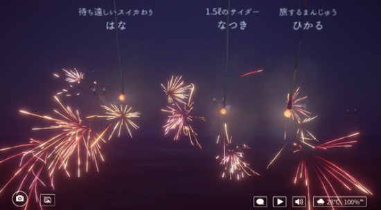 游戏中的天气状况会依照现实世界而改变,根据不同的温度和天空环境燃放不同的烟花。玩家可以一个静静凝望,也可以手捧着与家人朋友聊天,甚至与陌生人一起共度治愈的时光,并拍照分享。