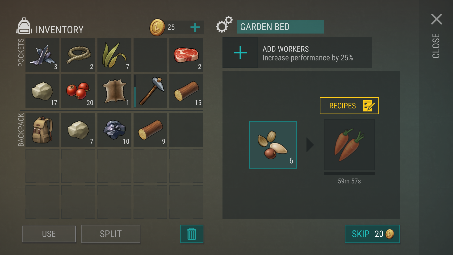 当有一定工具后还可以搭建自己的小屋,小屋会用到各种资源,随着游戏进度的解决,种植,制作等内容都会可以使用。