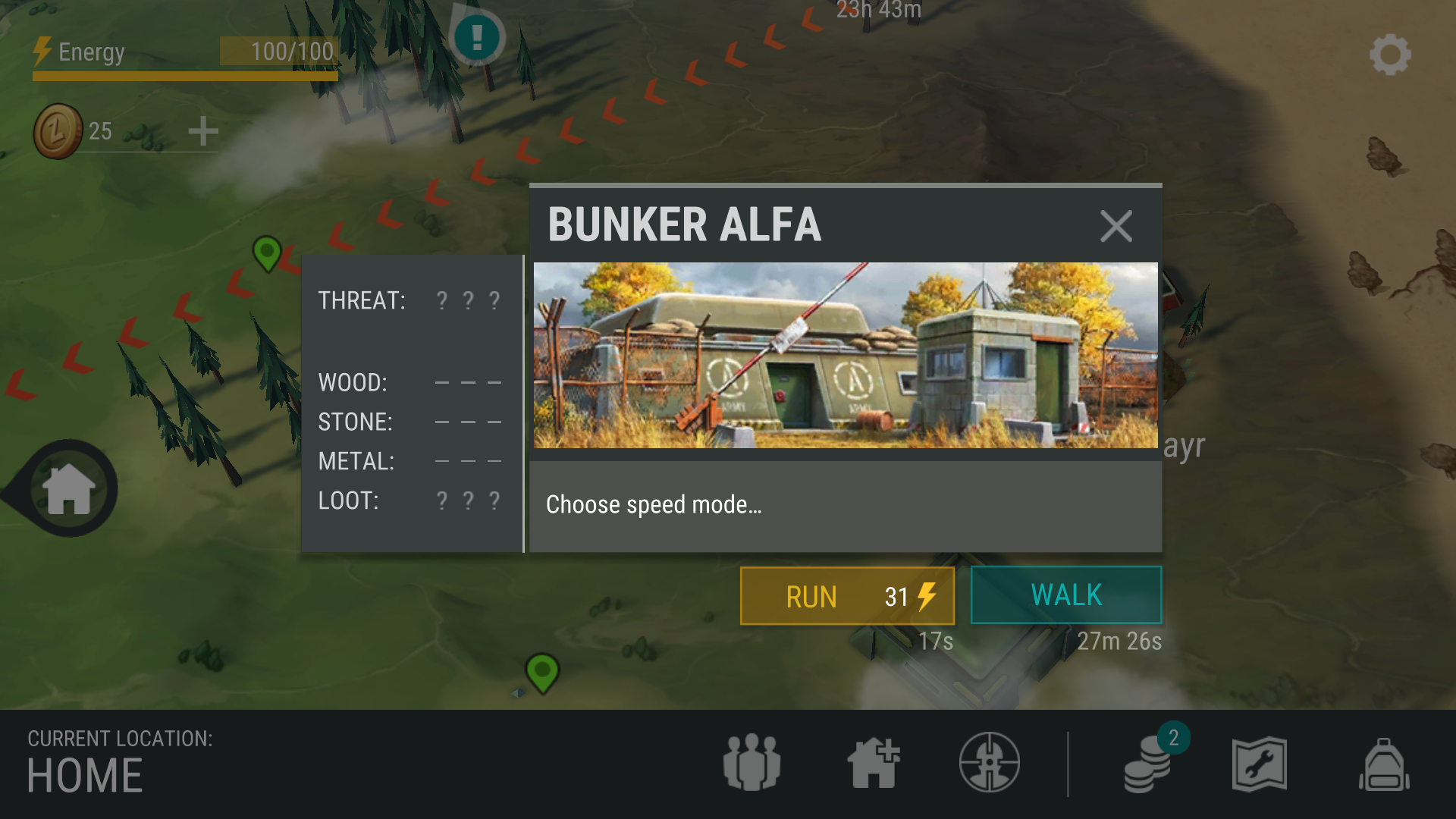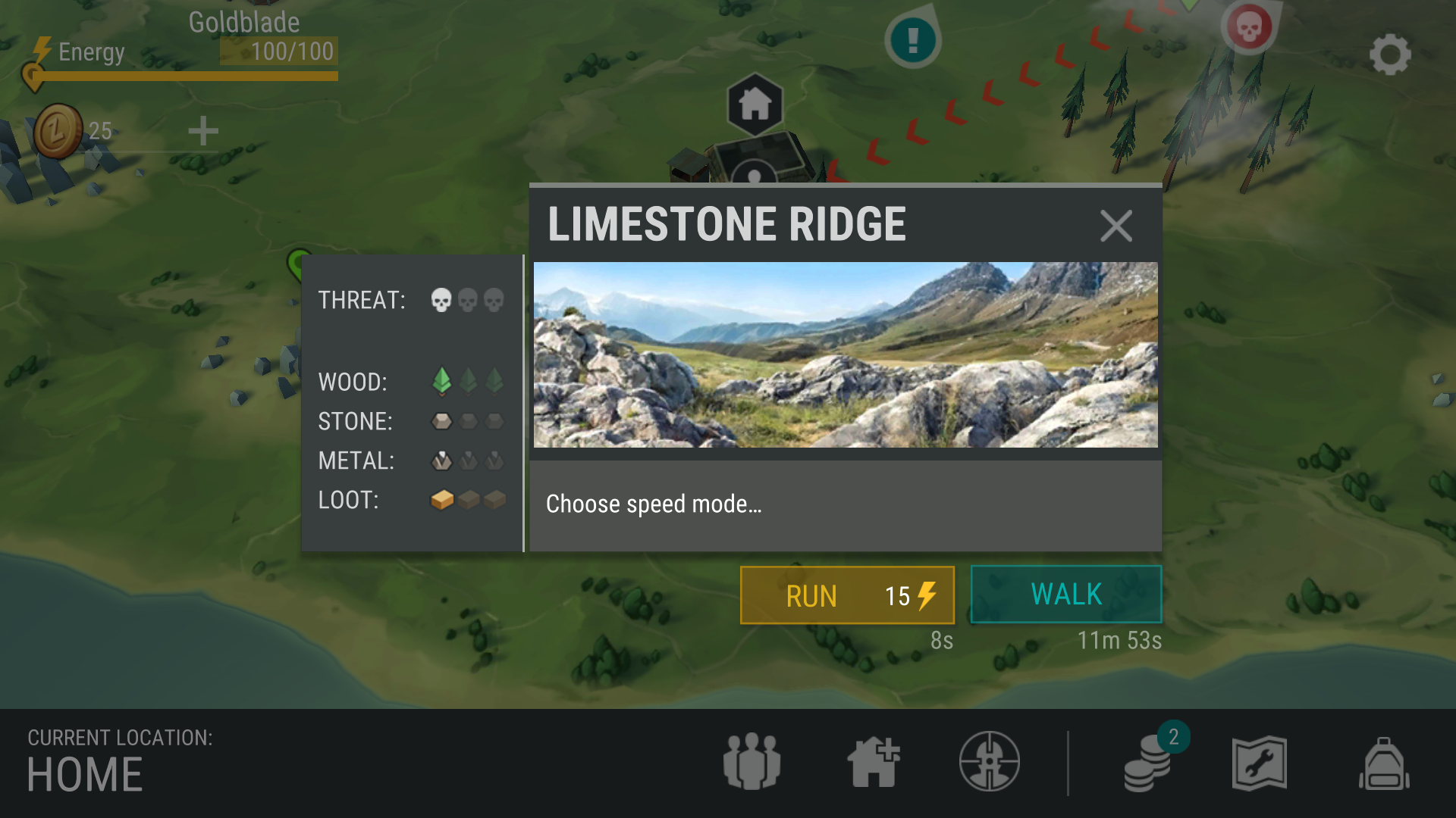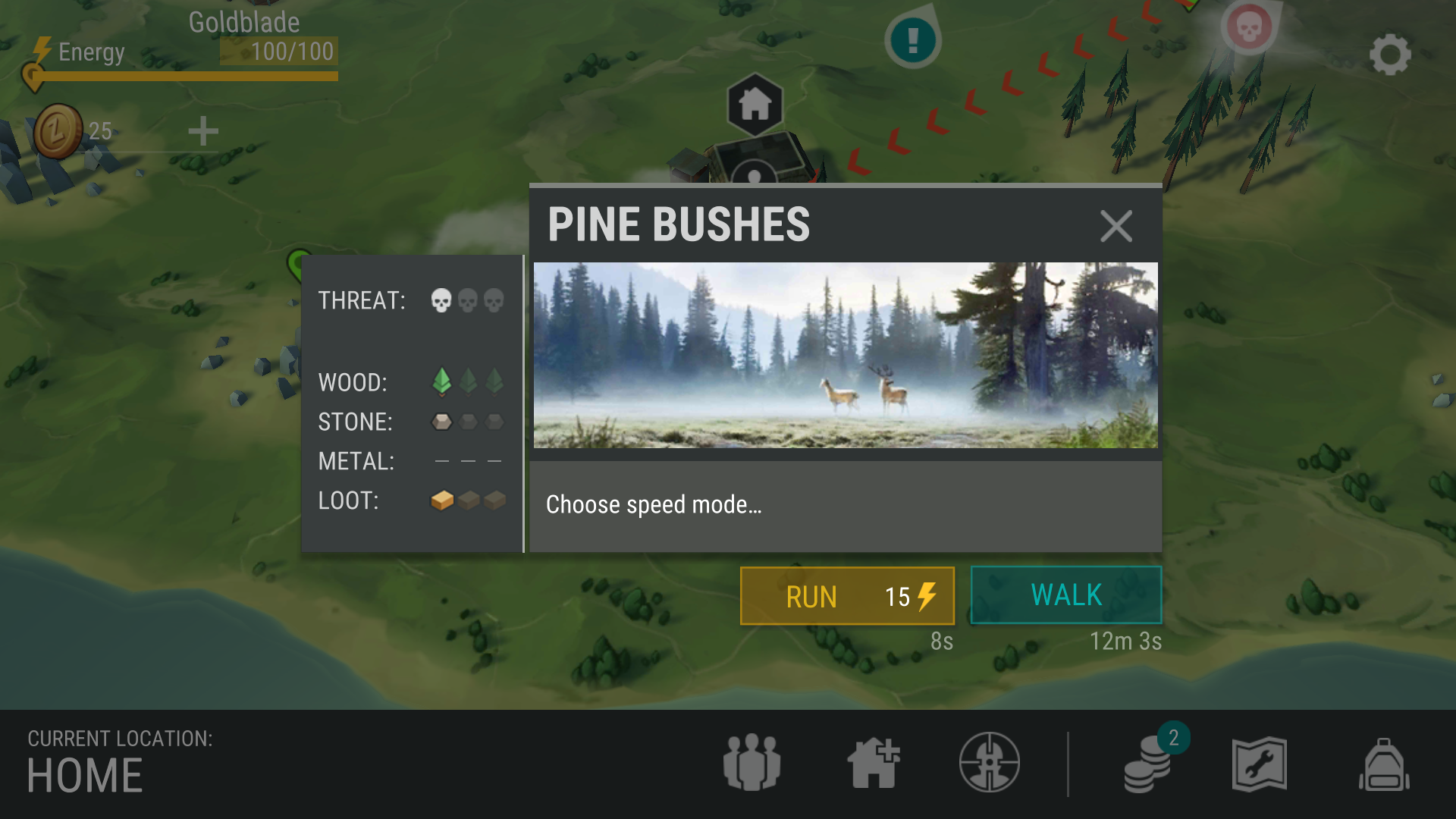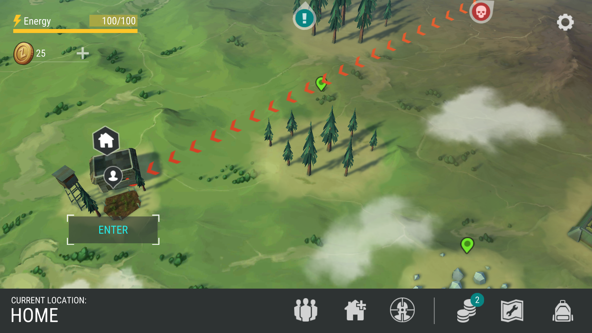 大地图上可以显示不同地方的难度,难度越高资源越好,比如枪械在低级地区就很难遇到。需要注意的是在其他地图上就有可能遇到其他玩家,玩家可以互相攻击洗劫对方,小心不要被抢。