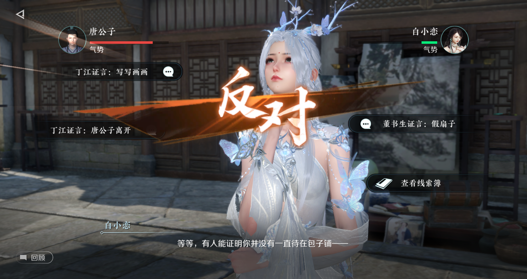 甜水巷里胭脂香粉四溢,神侯府门口也有不少故事发生。正巧门槛就有捕快在捉拿书生,打听一番后了解,似乎是书生偷了一把扇子正在被缉拿。若是凑上去听个八卦,还会被捕快大哥邀请帮忙断案,可以打探了一圈周围人的口供,再根据大家的证词拼凑出案件真相,挖掘出案件背后的真相!