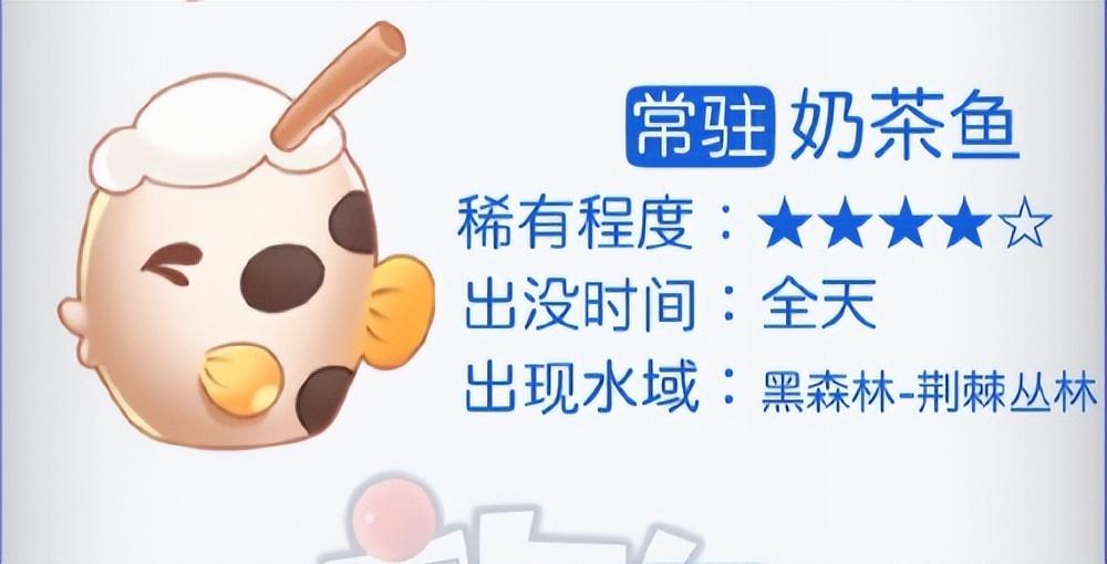 1、奶茶鱼是最近新推出的常驻鱼类,也是四星的稀有鱼种。