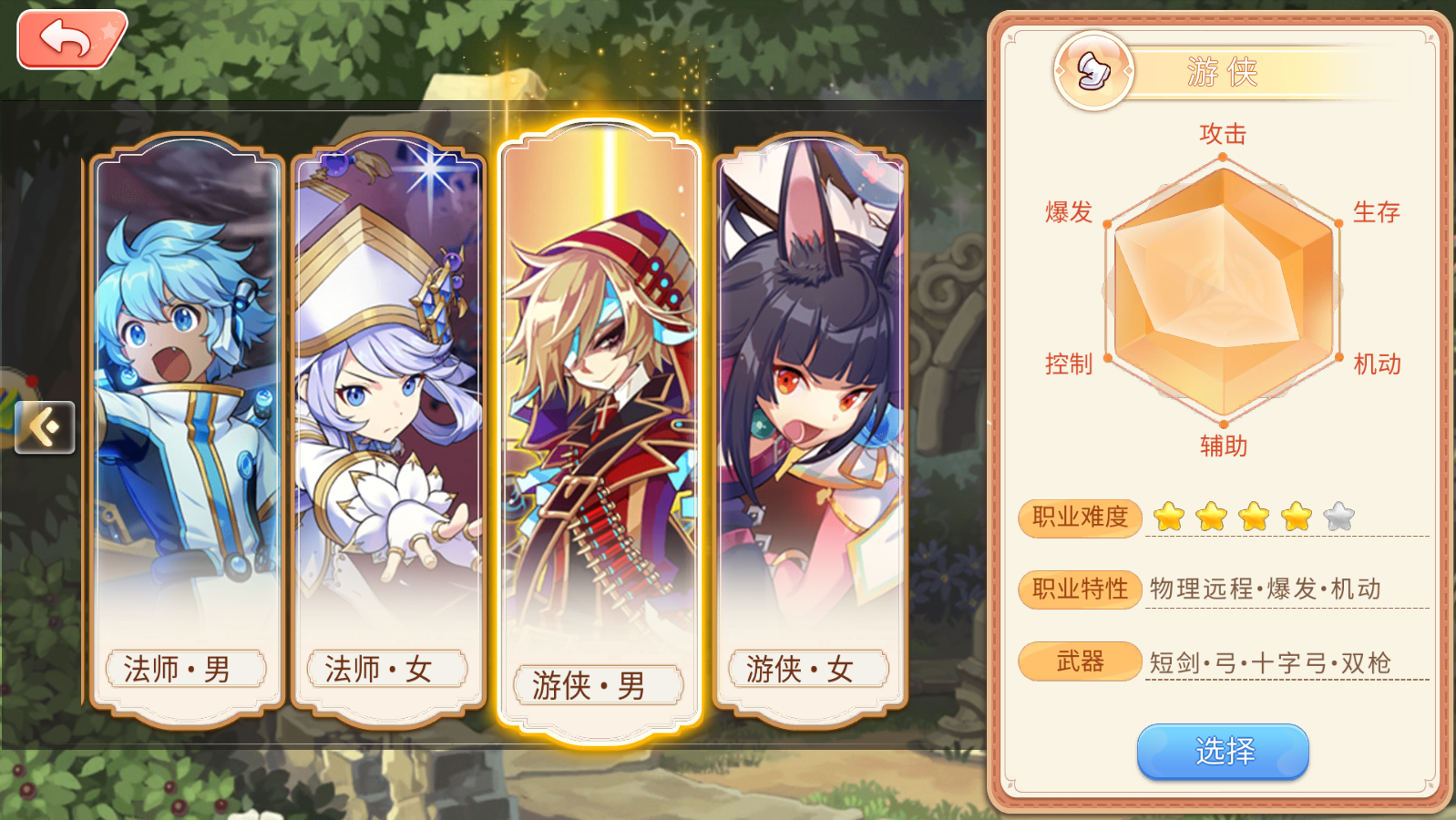 游侠是个主要靠打爆发的远程物理攻击职业,职业难度四颗星,主要使用短剑,弓,十字弓和双枪。游侠的爆发和法师的攻击力一样,都是这几个职业中最高的,同时,他的身板和法师一样都是最脆的。喜欢游侠的可以亲自体验一下呦。