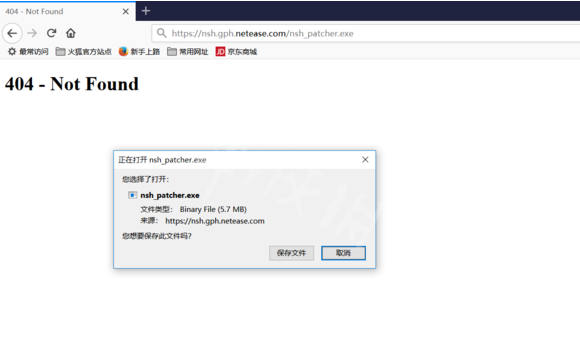 根据404异常的结果判断是服务器上没有这个文件导致请求失败,难道是程序猿忘记了在服务器上上传nsh_patcher.zip文件吗?