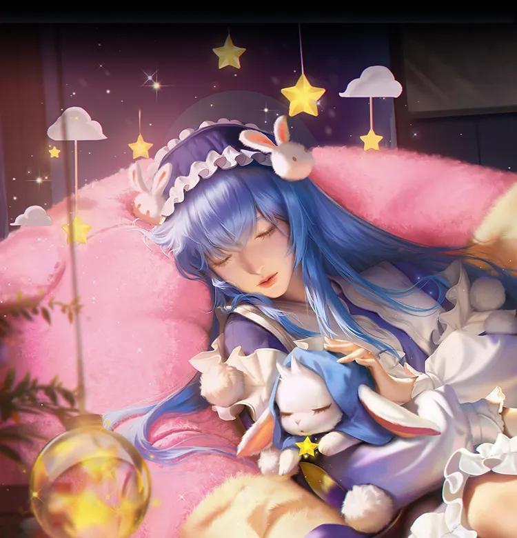 最近,王者荣耀大手一挥,又推出了一款S30赛季荣耀战令进阶版一级皮肤也就是嫦娥的暖冬兔眠,看过了嫦娥清冷不食人间烟火的模样,突然看见她以蓝发家居风少女的形象出现在大众面前,不得不说,这种巨大的反差感,真的是让人眼前一亮。