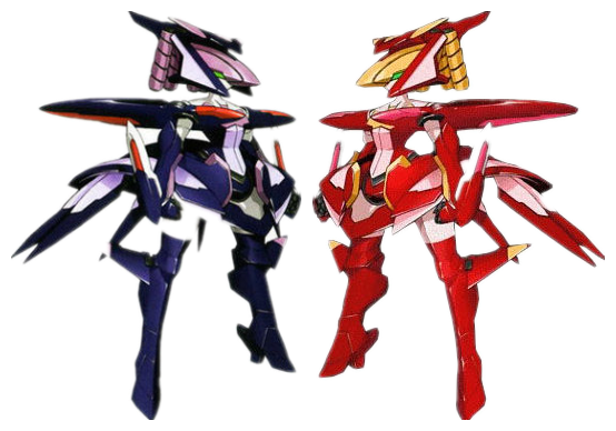 和其他的人形兵器相比这家伙算是mini机体了。一共两台,红色为妖精利昂G,驾驶员莱茵公主;蓝色为妖精利昂S,驾驶员为拉托尼。两台机体只有配合作战,才能发挥应有的实力。