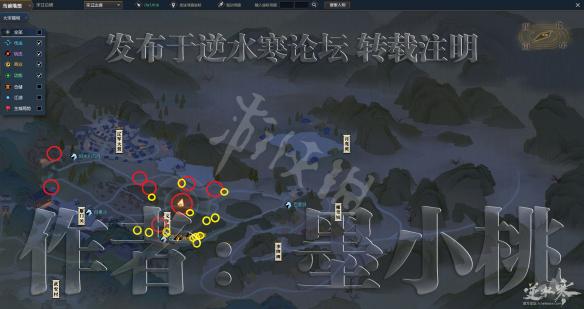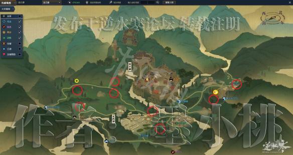 下面是我呕心沥血花了N个小时标记的全地图路亦拾遗点,其中红圈是情况1,黄圈是情况2,3(点击可放大)。