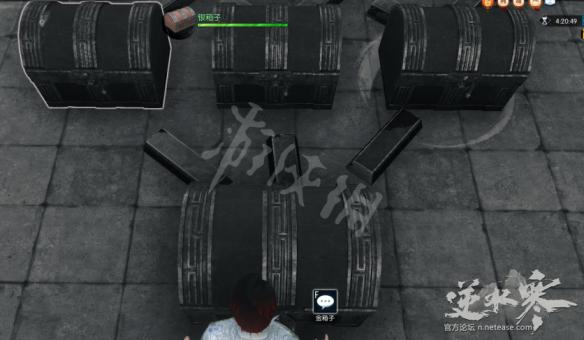 最后的金箱子的密码是三个银箱子给出来的数字从左到右排列是242,打开箱子之后触发剧情然后出门捡到带血的手帕,(161,172)获得提示。
