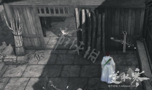 笔墨和白纸坐标在(161,196),捡完笔墨和白纸,会触发神秘人对话。