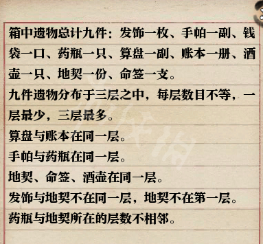 根据提示我们会屋子里能看得到很多宝箱,先开后面的4个小箱子,根据箱子给的提示。