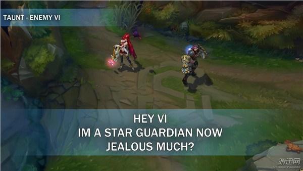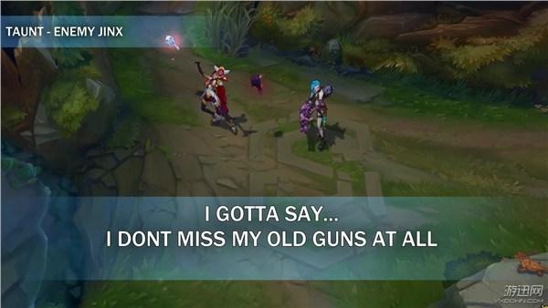 对着霸天零式皮肤的塞恩学机器人说话,回城的时候与拉克丝讨论午饭,对过去的自己说不喜欢旧枪,对源计划皮肤不屑一顾,向自己的老对头皮城执法官蔚炫耀自己成为了星之守护者,这个疯疯癫癫的丫头无时不刻不散发着迷人的气息,如哈利·奎恩一般令人痴迷。