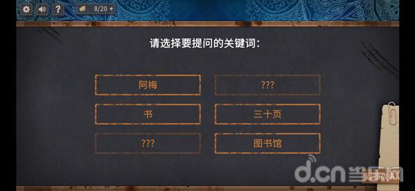 看过了故事,就可以开始提问了。其中还有隐藏的关键词,需要在对其他关键词的提问中获得,一般问到了关键的精彩问题即可解锁。一开始的提问总是在摸不着头脑中进行的,就像上图的关键词选项:什么阿梅?马冬什么?