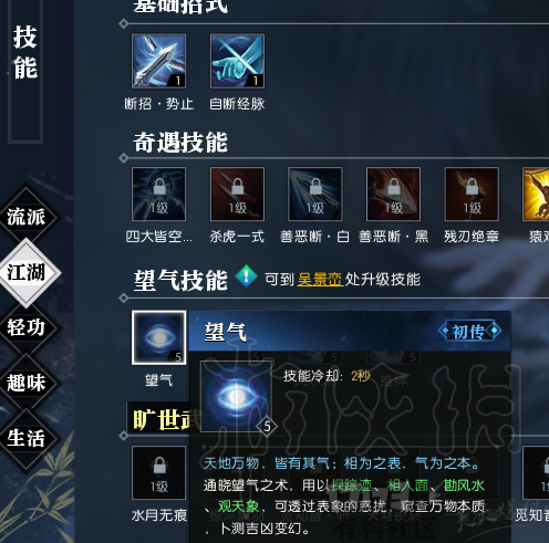这个界面能找到的所有NPC都能望,而且每次望气升级后再望又会再给一些望气经验。