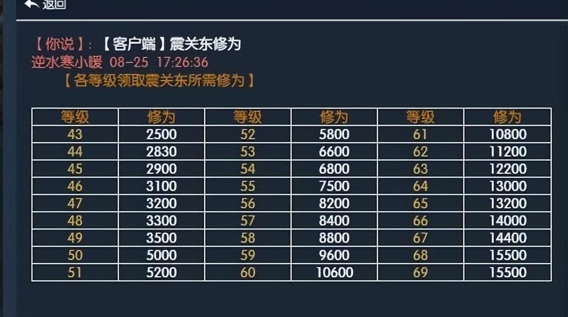 4:押镖所需要的修为跟修炼如图所示,一定要按这个图去点修为点多了怕牟利点少了押不了可以高一点不要太多就行(59级以后就需要点修炼了需要加帮会)