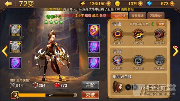 首先,作为一款端游改编游戏,我们难免会先考察它的原作味儿够不够浓,毕竟端游玩家会成为手游的主流用户,如果不能吸引这批人进入游戏,那么这款手游在一开始就会栽个大跟头。幸运的是,端游的血肉基本都在《全民斗战神》中得到了保留。端游七种职业中的灵猴和龙女被抽离出来作为手游的两大初始职业,而罗刹、神将、修罗、牛魔、玉狐则变成 72 变中的角色加入。而且即使每个玩家都选择了初始职业,但在战斗中可以自由使用 72 变的其他角色。另外,手游中还包括副本、BOSS 挑战、试炼、神之猎场、矿洞等模式可以挑战。对比端游玩法的良好保留与优化,《全民斗战神》在风格上却缺少了灵魂。端游那股强烈的黑暗和杀戮的味道在手游中几乎难觅踪迹,你只能在偶尔的过场图片和出现频率很低的对话剧情中寻得一丝端倪,而多数时候玩家只是在玩一款面目模糊的游戏罢了。