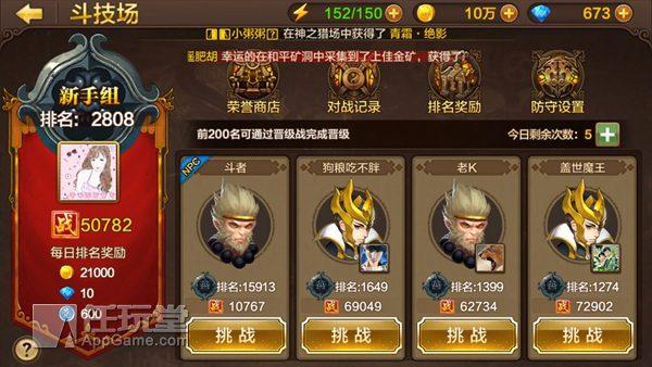 而对于一款战斗手游来说,与副本战斗同样重要的存在就是竞技场了。但对比内容较为丰富的副本和挑战模式,《全民斗战神》的斗技场却比较鸡肋。每个玩家每天只能挑战 5 次对手,系统会为你匹配 4 位敌人,其中还会随机出现一到两个 NPC,他们都具有低战力和高排名,基本是送分。但另外三个对手的排名及战力却让玩家望尘莫及,因此你只能先给真实玩家送死,再通过战胜 NPC 拉回排名。再加上战斗过程也基本是数值比拼,操作不太能左右战局,这都让斗技场变得没什么激情可言。