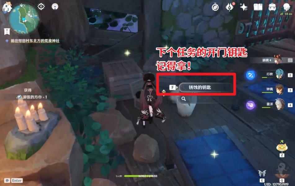 *任务完成后先别走,鸟居右侧雷结界后面还有一个华丽的宝箱和锈蚀的钥匙(用于开后续任务的锁)。