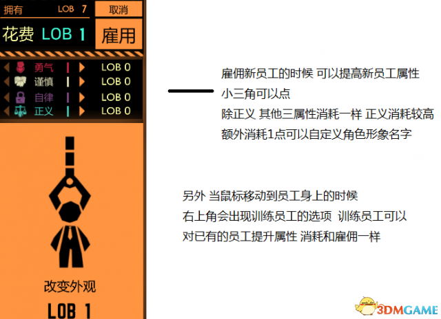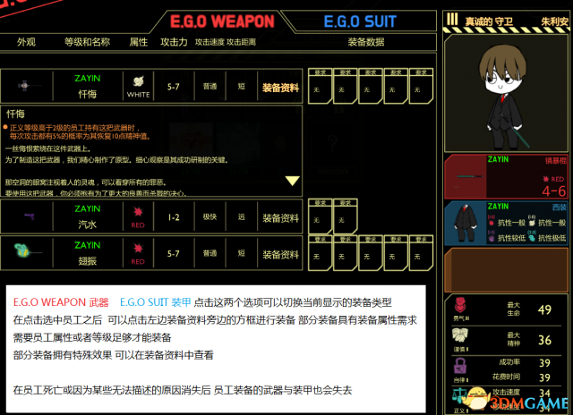 员工衣服下面的空槽 是显示对异常进行工作之后获得的饰品的