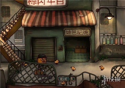 3.然后下几个楼梯,来到小鸡广场,地上有个火钳,被栏杆挡住了可能看不清,然后往前走点栏杆上有个铁钩,拿上。