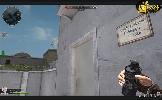 这是进攻B包点的最后一步,投掷这颗闪光弹就意味着你即将要进攻B包点了。这颗闪光投掷的位置可以是下图我所站的这个位置,可以通过B区仓库的墙反弹到B区仓库内。很多防守B包点的守卫者喜欢在B区仓库进行防守,所以当你进攻之前可以投掷闪光弹来封锁B区仓库内敌人的视线,再进行进攻,一举拿下B包点。