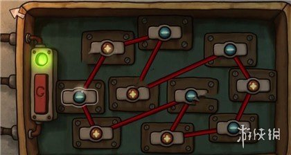 再冲过牙医店到了楼梯间,墙上有个小解密,也很简单,正负极相连,每个电极都要连两条电线。