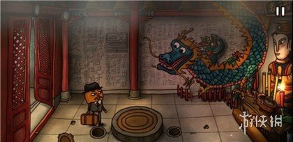 再一口气来到最底层,把道观的门锁打开(是个拼图)进去之后按照提示把手电筒放在最右边的洞里,把镜子放在左下的架子上,把龙骨放在中间祭坛上,依次放入金木水火土钥匙,催动手电筒,召唤神龙。