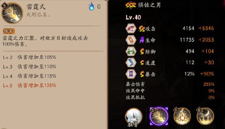 先说面板,是真的夸张,全游戏最高攻击,高达4154,生命还是A级别,其他全都是S面板可还行,就是速度这个S的含金量低了点,112,不过暴击不错,12%的暴击降低了培养成本。