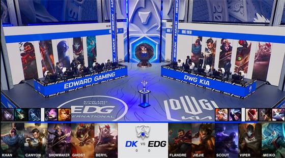 北京时间11月6日晚8点,2021英雄联盟全球总决赛迎来了“终局之战”——LPL、LCK两大赛区的一号种子EDG、DK强强对话冲击冠军!EDG承载着LPL全部的希望,在先下一城而后被DK连追两局情况下顶住了巨大的压力,复刻了S11半决赛淘汰GEN的对局,最终3-2击败了S10冠军DK,成功问鼎S11桂冠,成为全球总决赛历史上第9支冠军战队!这是LPL赛区的第三座S赛冠军奖杯,也是EDG队史第一个S赛冠军!恭喜EDG,恭喜LPL!
