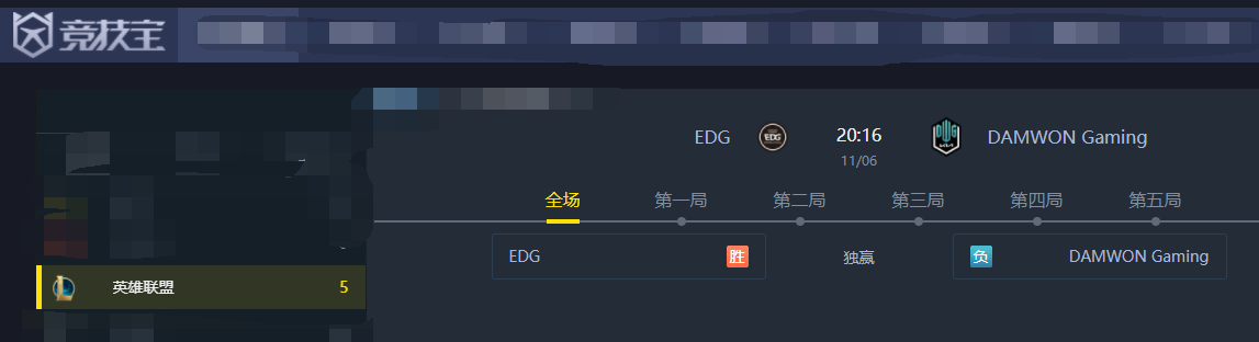 EDG:凯南、赵信、佐伊、厄斐琉斯、洛。