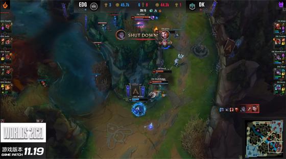 手握土龙魂的EDG有了更多回旋的余地,男枪更是全场最先掏出无敌四件套,DK在中路展开疯狂拉扯,但EDG显然不想再跟DK拖延太多,利用视野优势直接集火Rush掉了大龙Buff,慌忙下龙坑的格温被两枪带走。32分钟EDG正面展开推进,佐伊气泡睡到娜美,EDG果断开团斩杀DK双人组,随后兵分两路,一边干扰DK上中野回城,另一边推平了基地!恭喜EDG扳平比分,双方进入决胜局!