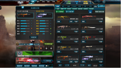喜欢点射和连点的玩家推荐使用SCAR系列武器,最好就是选择SCAR-天王或者SCAR-朱雀这两把枪的属性是SCAR系列顶尖的,并且打头是直接一击毙命无论敌人是否有AC加成,并且SCAR-朱雀和SCAR-天王前四发子弹都是相当的稳只所以很多高段位的人喜欢用,在瞄准好爆头线的位置在开枪是十分好击杀敌人的。