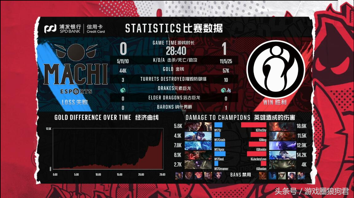 IG对上的则是来自LMS赛区的M17战队,前期IG凭借个人实力打出了三线优势,但Crash的猪妹四处救火保持了稳定的局势并一度占得上风。22分钟IG抓住空挡干掉猪妹拿下大龙,随后发育良好的iG没有再给M17机会。27分钟,上路The shy剑魔的一打四不死也宣告了比赛的结束,iG成功拿下LPL首胜。