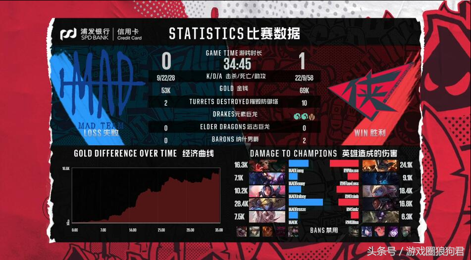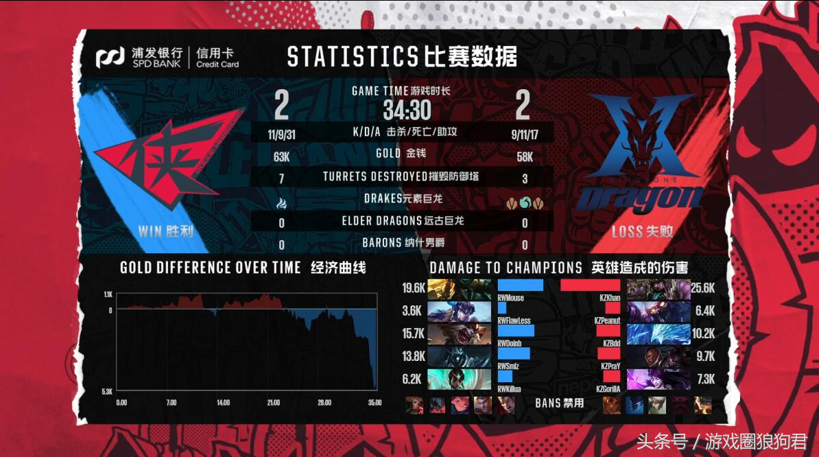 第二战是RW对上MAD。中路Doinb选出奇兵波比抗住了对位刀妹的进攻,甚至让配合支援的Mouse拿下双杀奠定局势。。随后RW推中路一血塔、拿峡谷先锋、拿大龙一气呵成,并顺势破掉MAD的下路高地。虽然后面MAD中路高地塔前打出一波反击,但RW很快调整状态,又拿下第二条大龙后成功结束比赛。