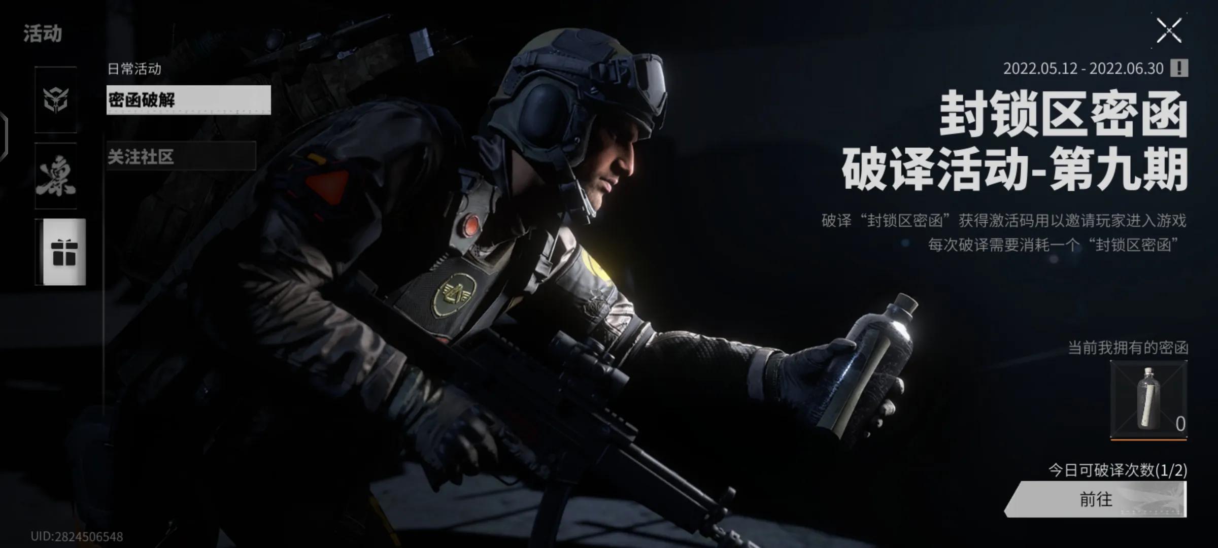 《萤火突击》“第九期封锁区密函破译”活动现已开启。