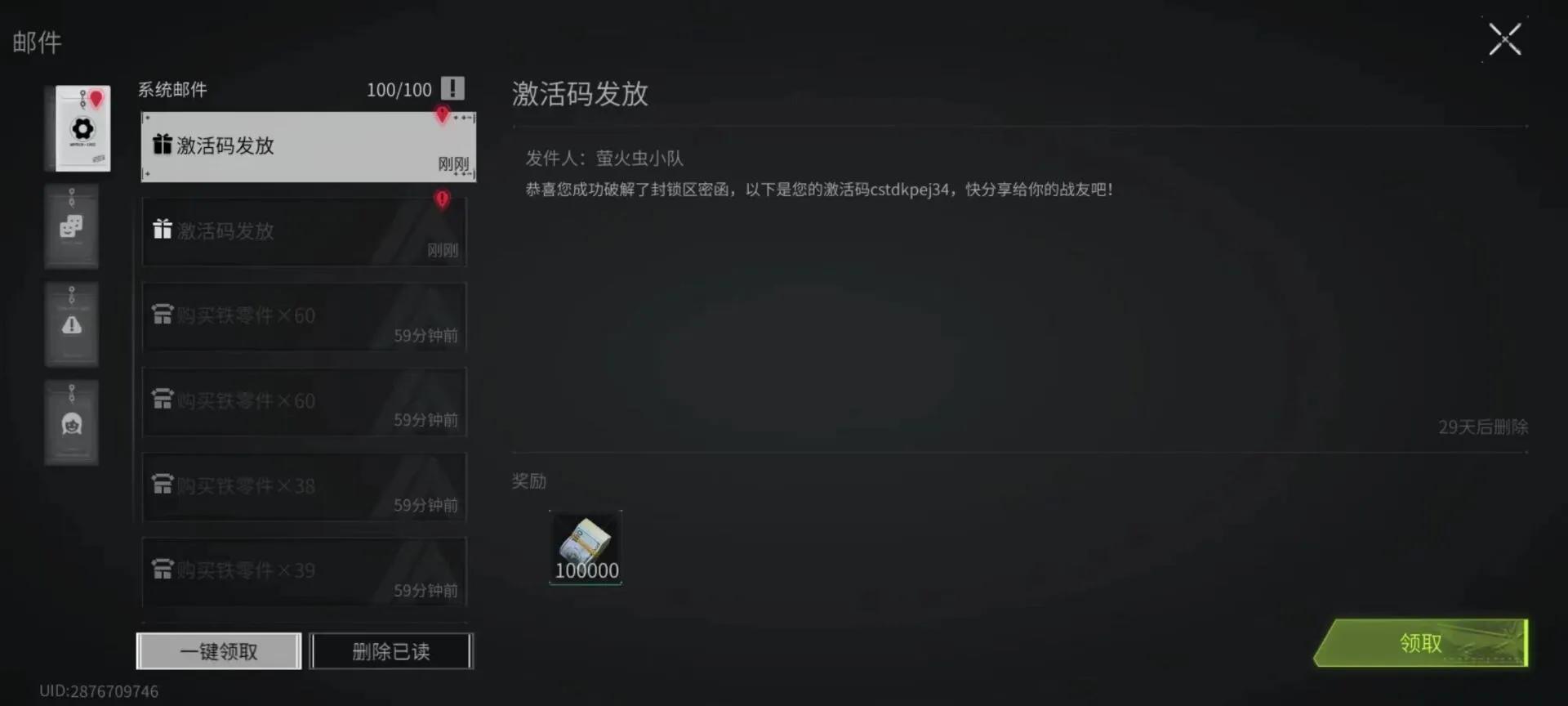 成功破译获取的激活码将通过游戏内邮件进行保留,萤火虫们无需担心遗失问题。