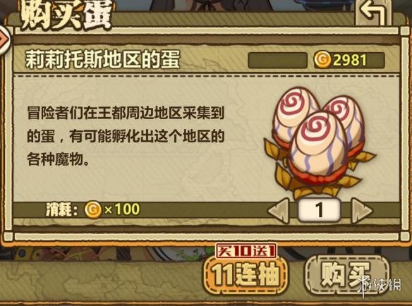 第一个地区:王城莉莉斯托,市场买蛋价格为100金币一个,1000金币十个并且送你一个。